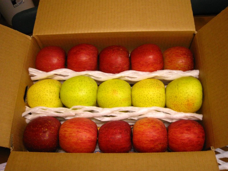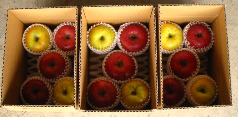 上の写真は ふじ(赤) と おうりん(黄) の詰め合わせですが、