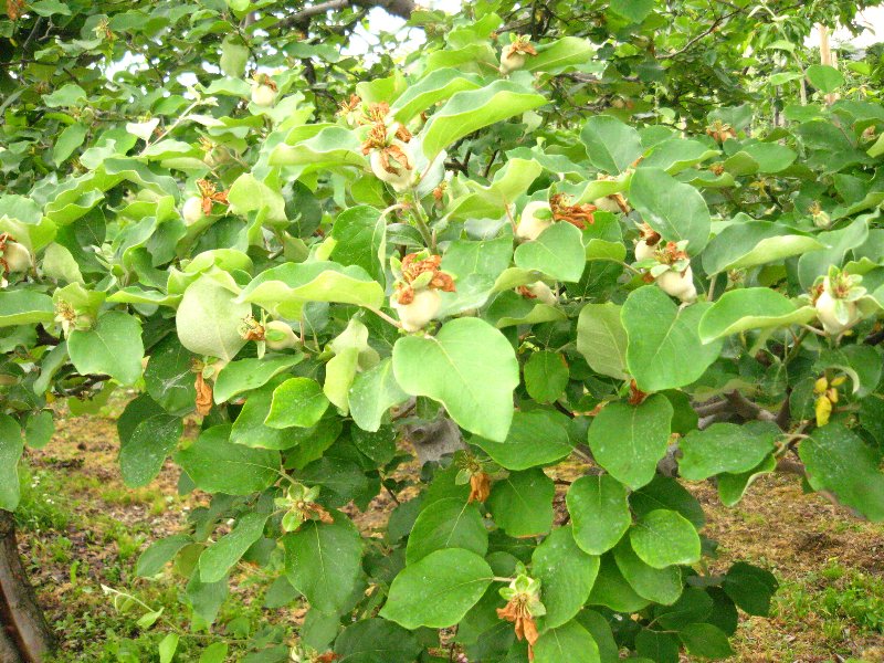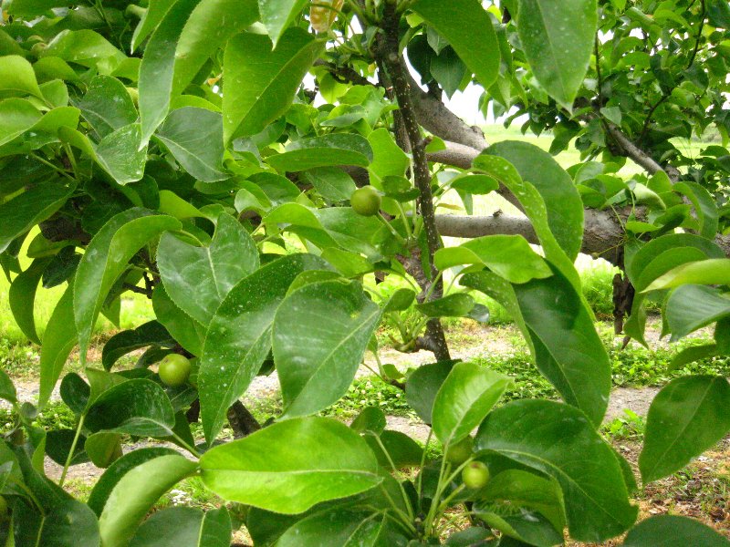 その他、梨(左) や マルメロ(右)だったかな? も実を付け始めました♪