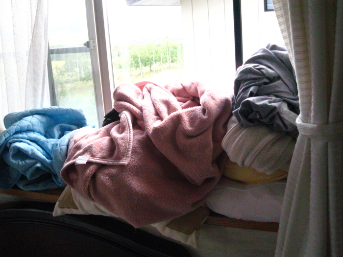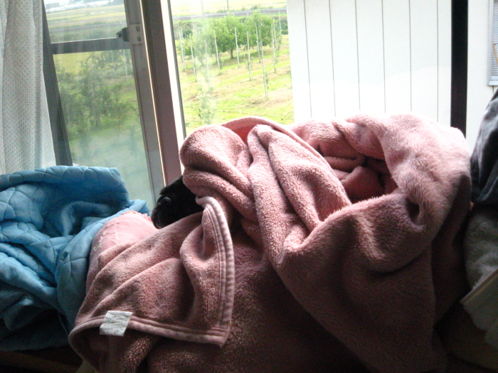 朝は寒いので、毛布をかけてあげました。