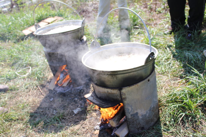 芋煮が出来上がるのを