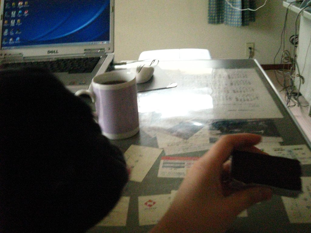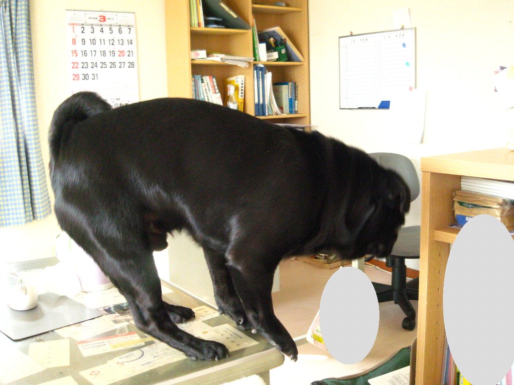 机の上に乗っちゃいました。(^^;