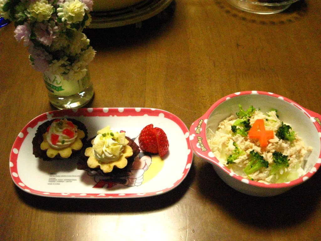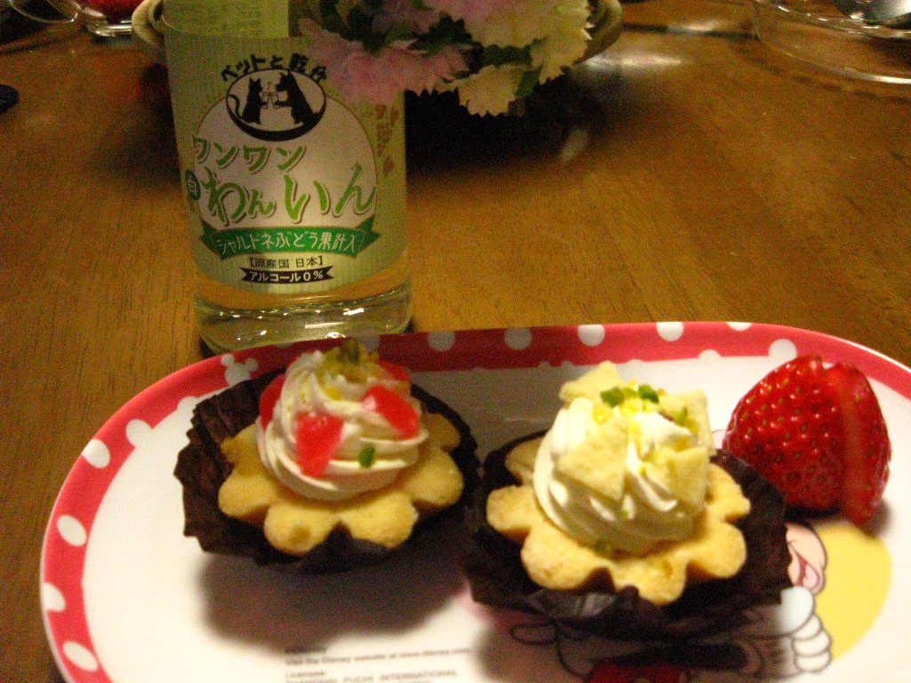 右 : お店で買ったプチケーキ2個。 そしてイチゴ