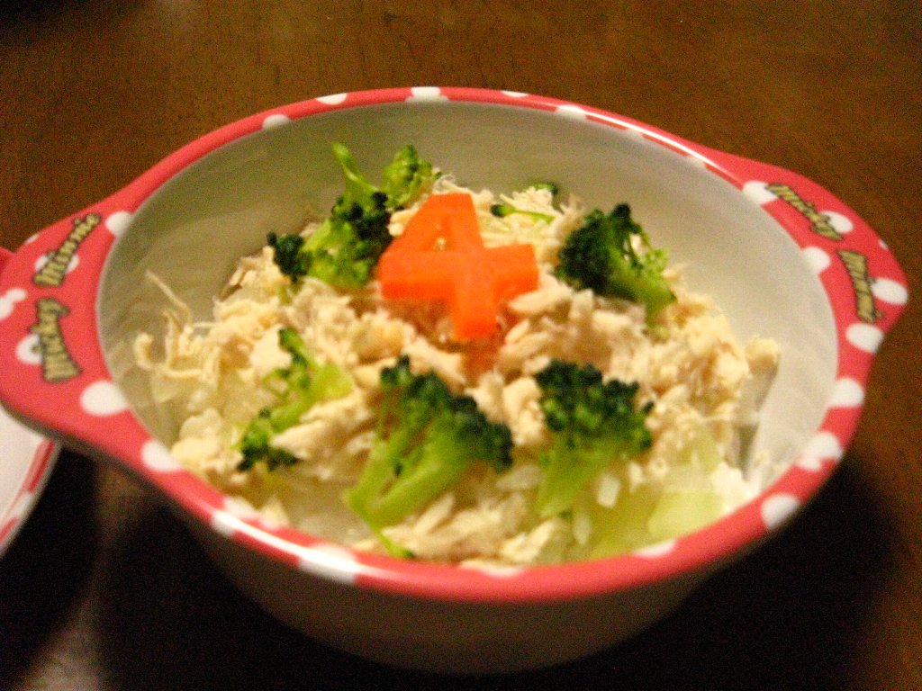 左 : 白米・大根・ブロッコリー・ササミのスープ仕立て