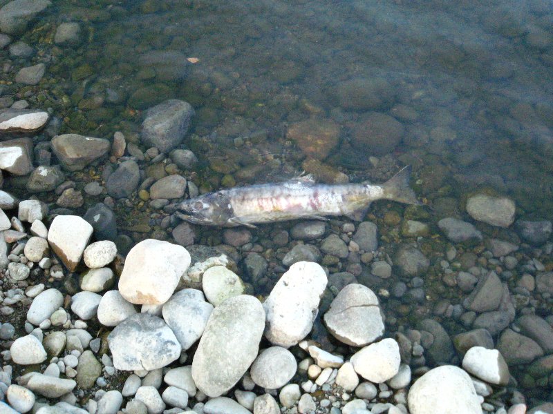 遡上してきた鮭は卵を産んで力尽きます。。。