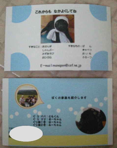 名刺の裏にもぐり君、そしてmanaponさんファミリーが♪