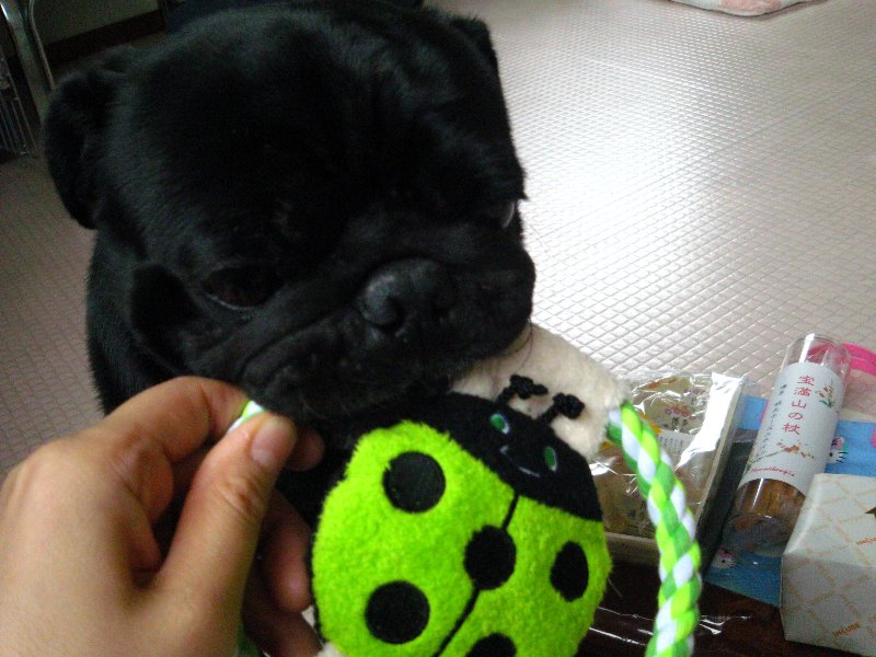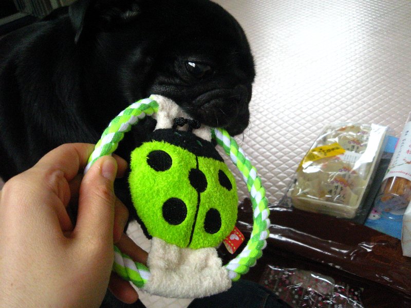 金太郎のことだからオヤツめがけて行くのかと思ったら、オモチャが気になったよう