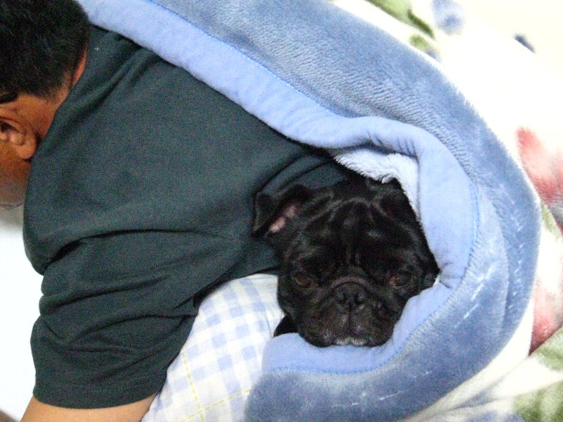 毛布に包まってウトウトの金太郎
