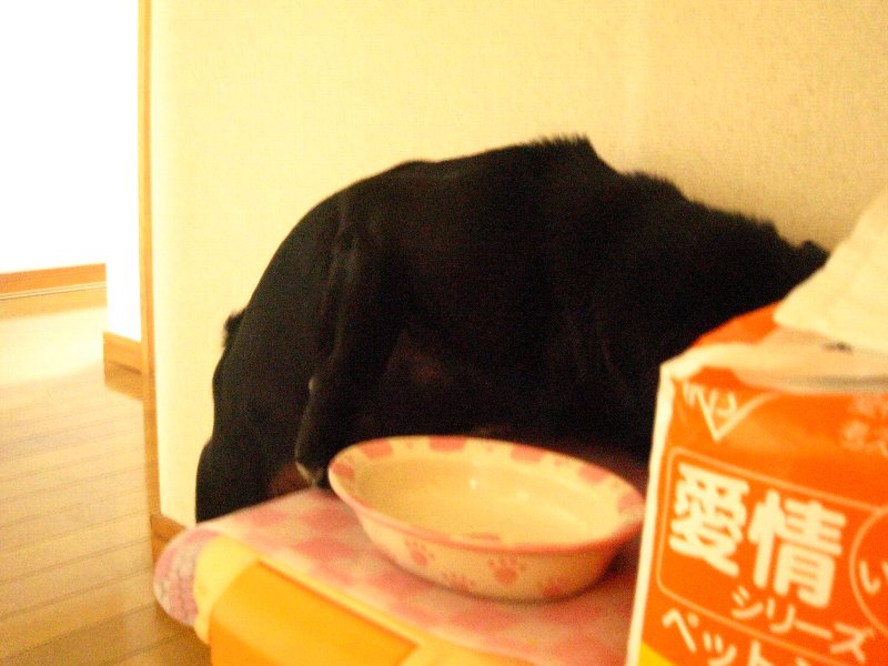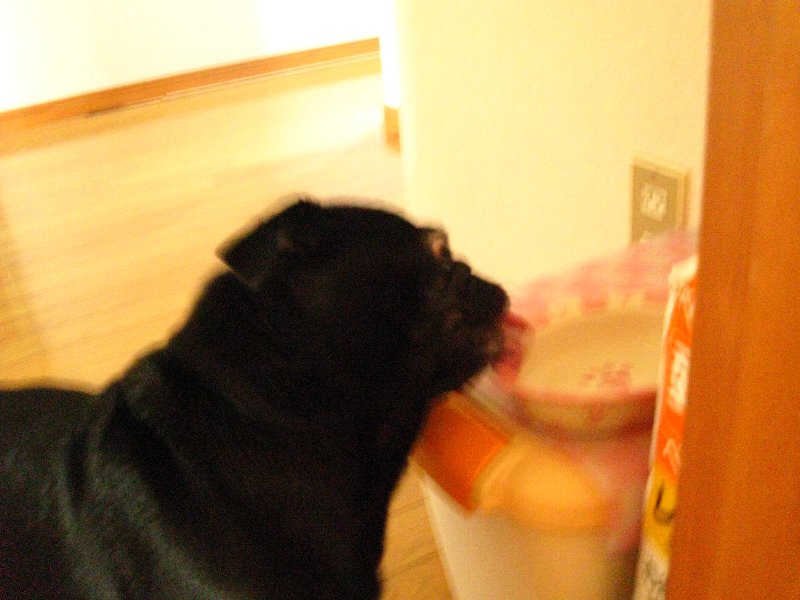 こぼれたフードを探してフガフガ(笑