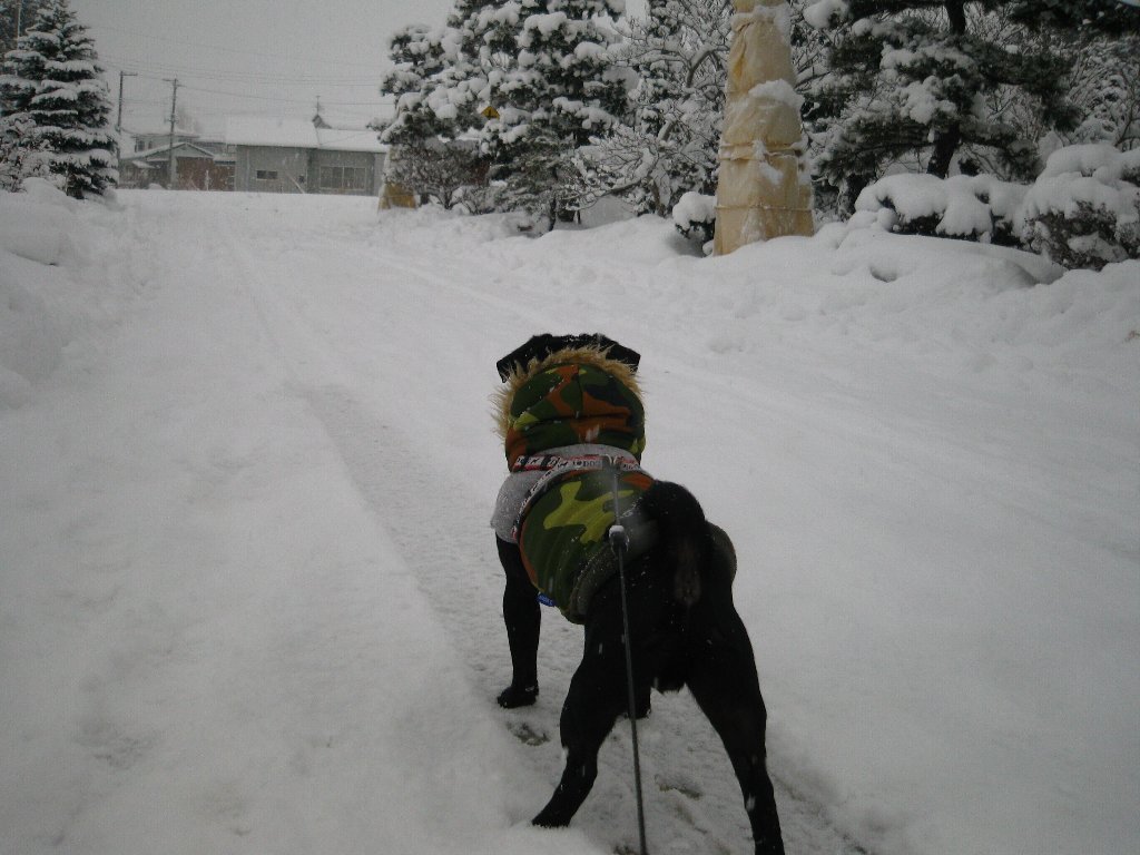 顔中雪だらけになって(笑)元気に散歩終了です(^^