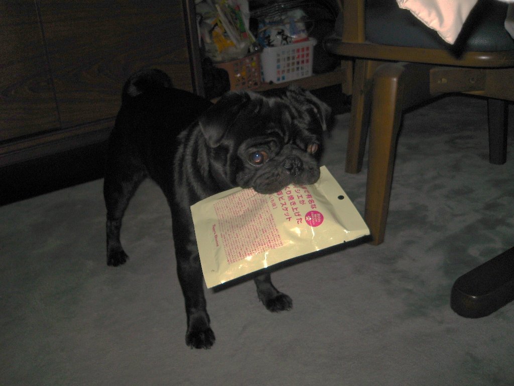 いつもの通りオヤツくわえて逃げました(汗
