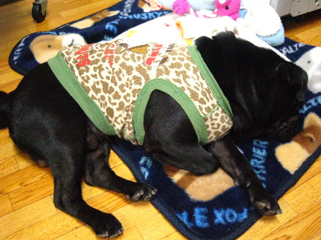 メーカーによって違うと思うけど、私が見たパグちゃん達が着れる基本(?)のサイズは5号なんだそう。