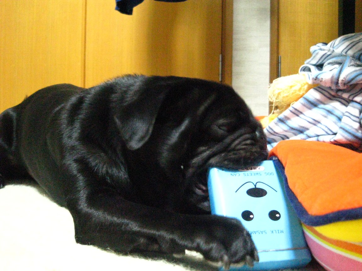 私たちが帰ってきて安心したのか行く前にあげていたオヤツを食べ始めました。