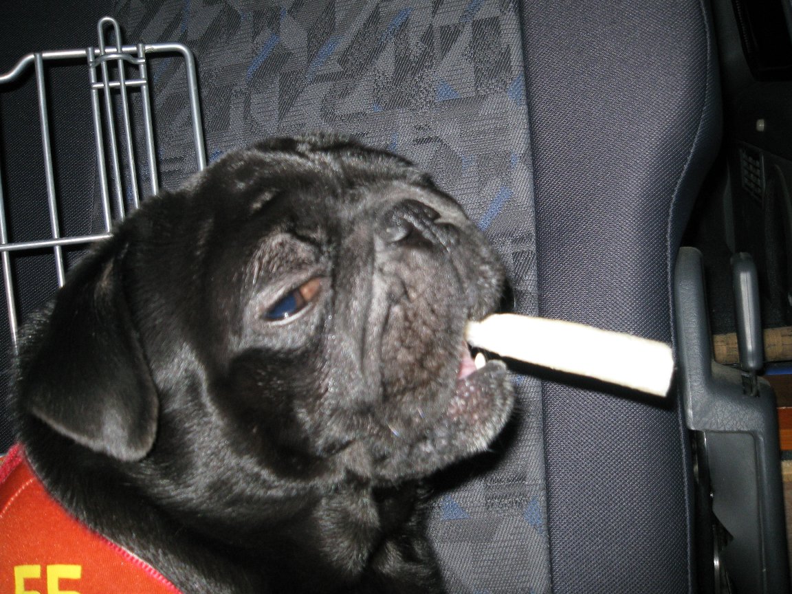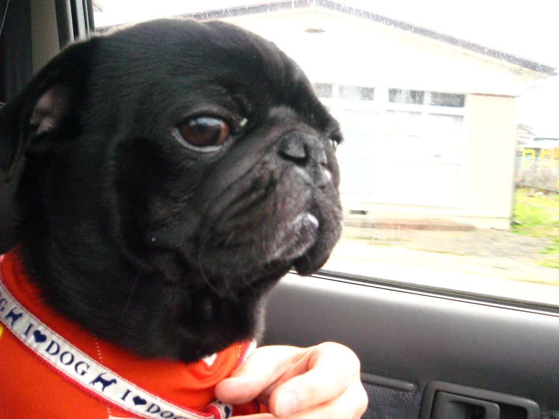 車に戻ってきてみると金太郎はオヤツも食べずにジーーッと待っていました