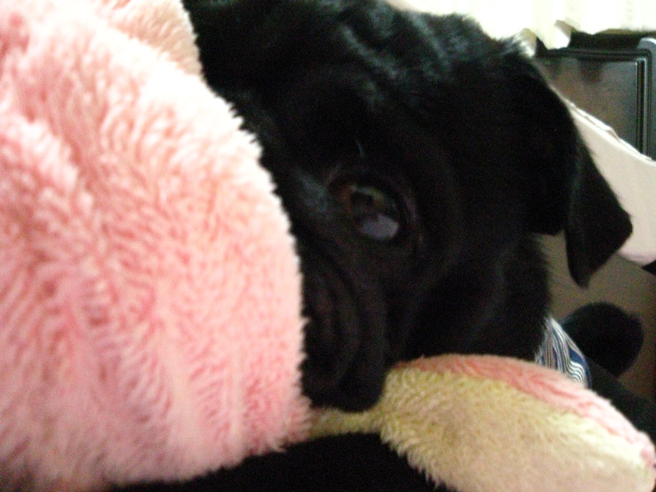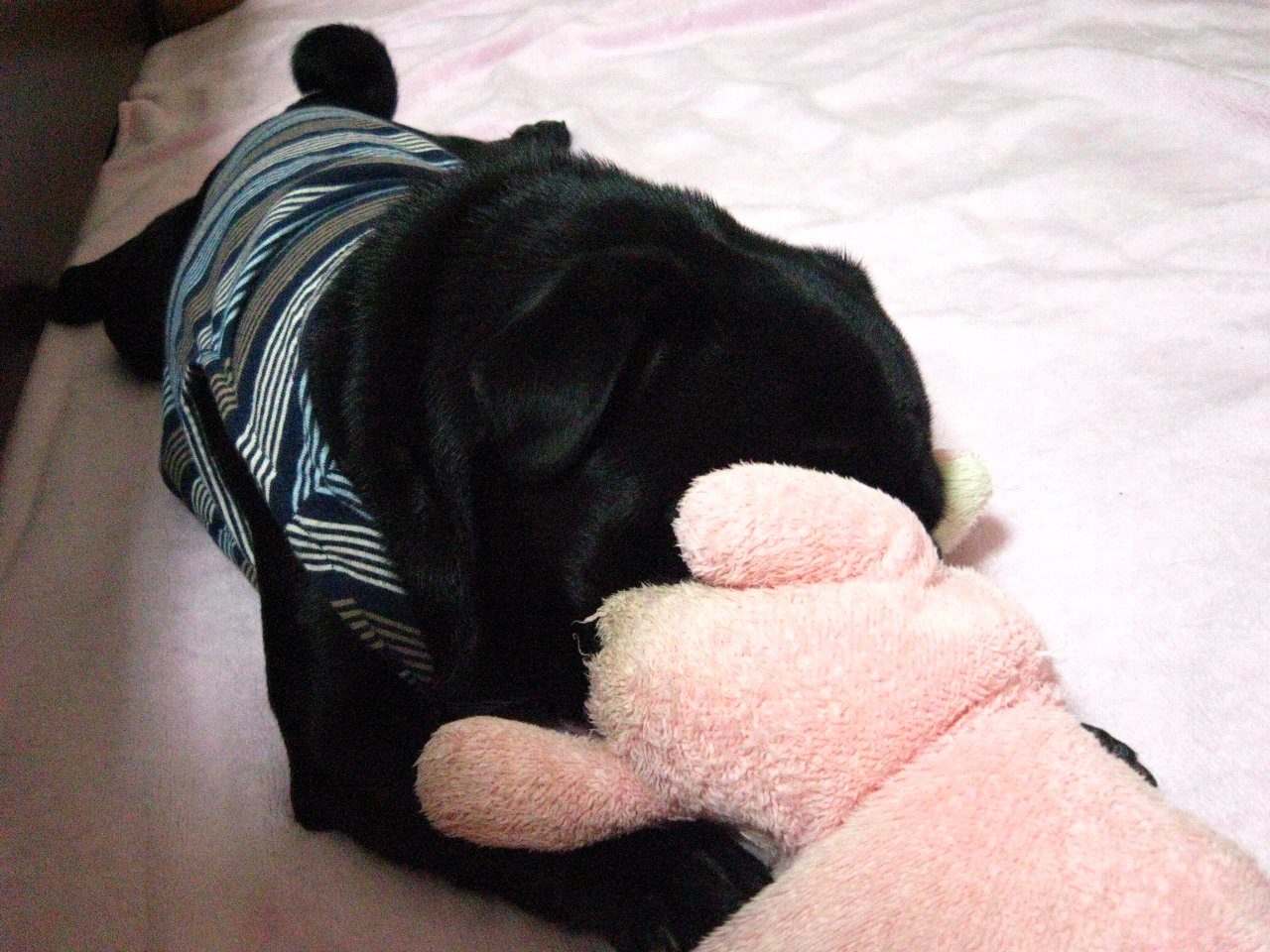 帰ってきてから金太郎と遊ぼうとしても、しばらくぬいぐるみとばかり遊んでいてなかなか構って貰えない飼い主なのでした~(泣