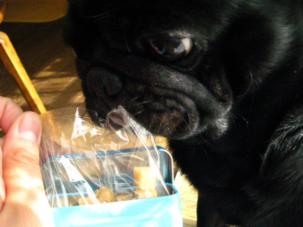 どうにかして中のオヤツをゲットしたい様子。 1回空けたのでニオイするんだね(^^